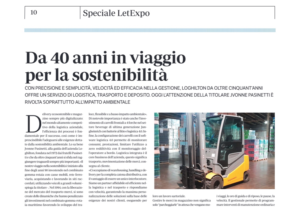 Scopri l'impegno sostenibile di Loghilton, raccontato nell'articolo pubblicato dalla testata giornalistica Trasporti&Logistica.